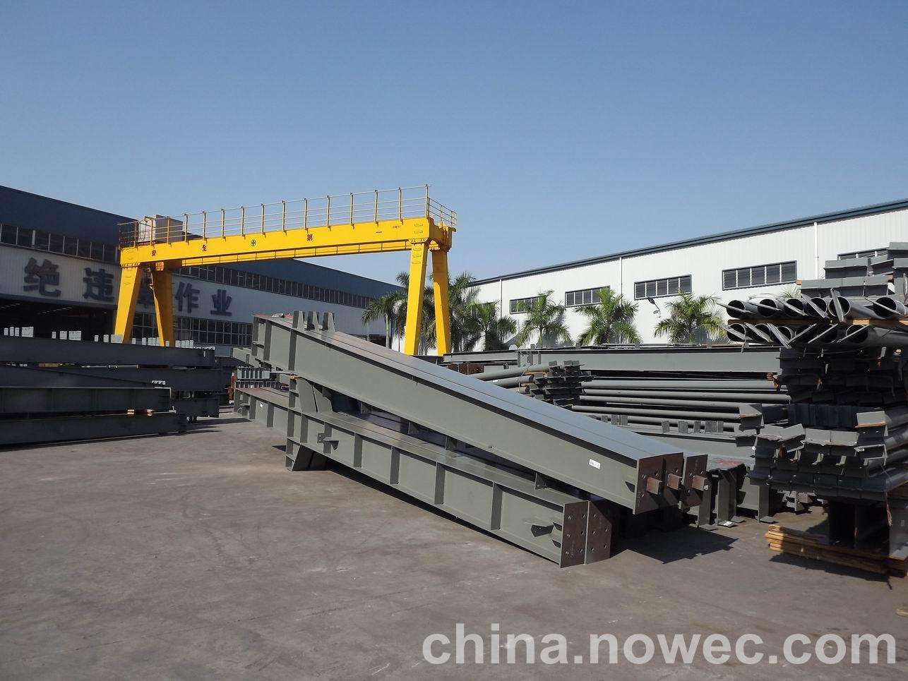 条状单元一般沿长跨方向分割,其宽度约为1~3个网格,其长度为l2或l2/2(l2为短跨跨距)。块状单元一般沿邛崃网架平面纵横向分割成矩形或正方形单元。每个单元的重量以现有起重机能胜任为准。条(块)与条(块)之间可以直接拼装,也可空一网格在高空拼装。由于条(块)状单元是在地面拼装,因而高空作业量较高空散装法大为减少,拼装支架也减少很多,又能充分利用现有起重设备,故较经济。这种安装方法适用于分割后网架的钢度和受力状况改变较小的各类中小型网架,如两向正交正放四角锥、正放抽空四角锥等网架。