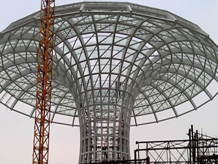 二、球形网架结构因其结构新颖,受力合理,自重轻、用钢量低等优点。如大型体育场馆球形邛崃螺栓球网架、公共场馆球形网架、电厂邛崃螺栓球网架、水泥工业球形网架、仓储物流球形网架、邛崃干煤棚工业球形网架、邛崃收费站邛崃加油站球形网架、展览中心、影剧院、商场、航站楼、候车厅、工厂邛崃车间、仓库、电视塔等球形螺栓球节点网架。国内球形网架结构主要分为:邛崃焊接球节点网架及螺栓球节点网架两种。螺栓球节点网架其构件工厂内加工量较大,现场安装便捷,适用于现场工期紧,邛崃施工条件、用电量受制约,网架形状复杂、邛崃杆件定位困难的异形结构。螺栓球节点球形网架系统基本由邛崃杆件、螺栓球、支撑支座等组成。按照节点形式可分为交叉邛崃桁架体系、四角锥体系、三角锥体系等。支撑方式多为固定支座支撑。对于大面积、大跨度及有特殊受力或伸缩要求的网架结构可采用橡胶支座、滑移支座、球铰支座等支撑形式,以满足结构自身的受力稳定、均衡,便于内力释放等设计要求。
